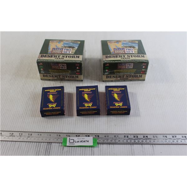 (2) Desert Storm Pro Set Packs, (3) Official Sets of Operation Yellow Ribbon Desert Storm Trading Cards - All Sealed/NIB