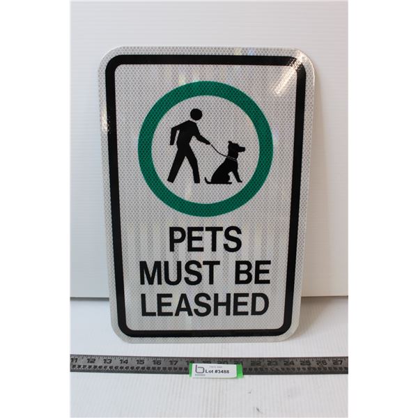Metal Reflective Sign - "Pets Must Be Leashed"
