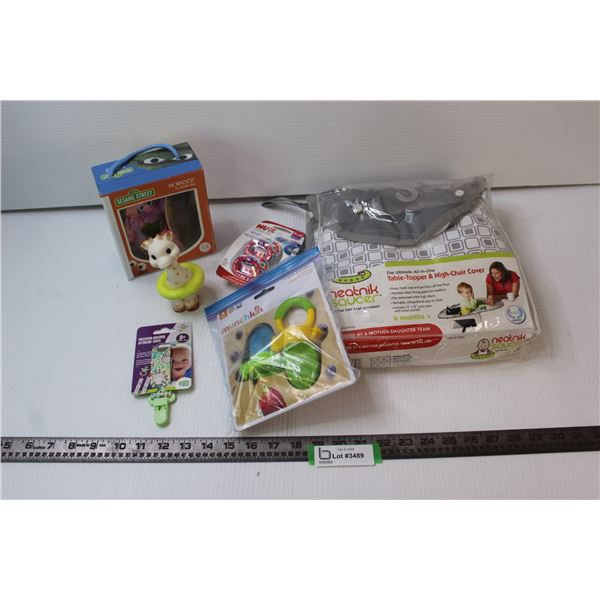 Neatnik Saucer, Sesame Street Shoes, Pacifiers, Food Feeders, etc.