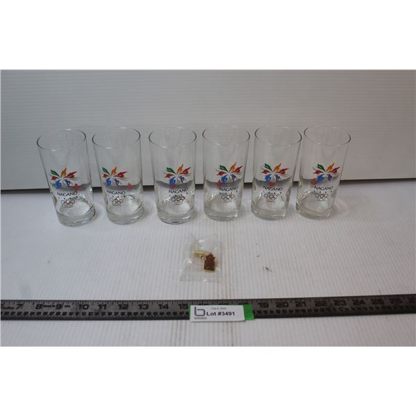 (6) Nagano Olympics Glasses, (2) Nagano Olympics Pins