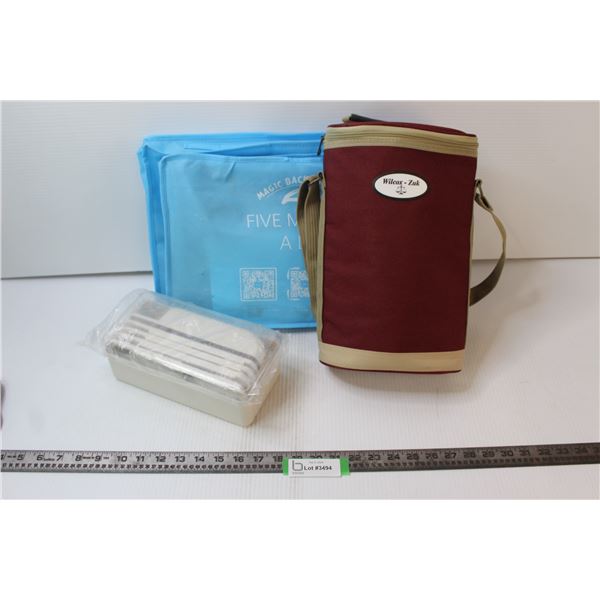 (2) Magic Back Supports In Carrying Cases, Two Bottle Carrying Bag, Vegetable Cutter/Slicer Set