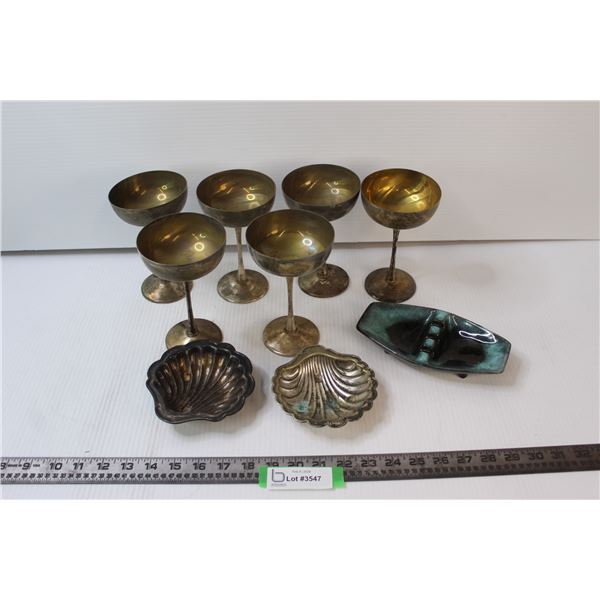 (6) Silver Plated Goblets, Silver Plated Shell Dishes, Ashtray
