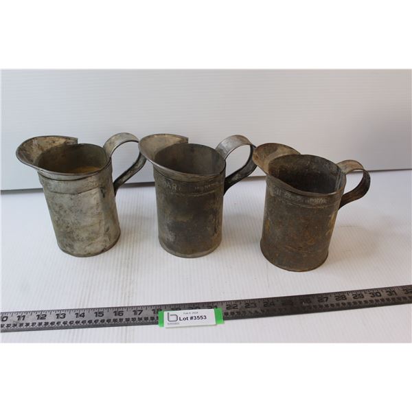 (3) Vintage Metal Oil Pouring Cans - 1 Quart