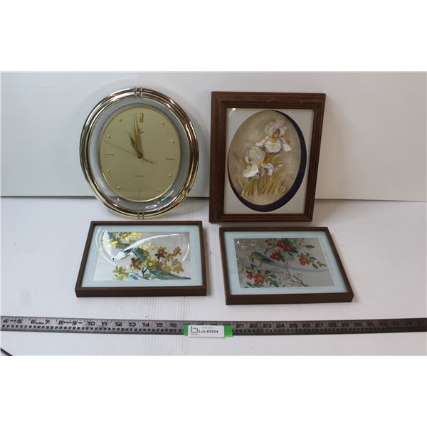 Wall Clock, (2) Framed Prints, (1) Framed 3 D Picture3554 - Wall Clock, (2) Framed Prints, (1) Framed 3 D Picture