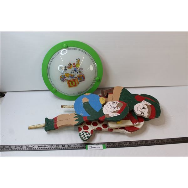 Disney Light Fixture, (6) Wooden Christmas Lawn Ornaments