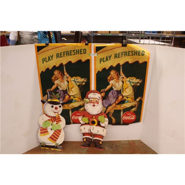 (2) Coca Cola Posters - (2) Christmas Cardboard Cut-Outs