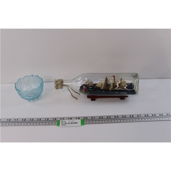 Ship In A Bottle, Blue Glass Dish3590 - Ship In A Bottle, Blue Glass Dish
