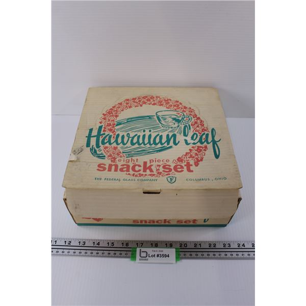 Eight Piece Snack Set - Hawaiian Leaf Pattern - Federal Glass - In Box3594 - Eight Piece Snack Set - Hawaiian Leaf Pattern - Federal Glass - In Box