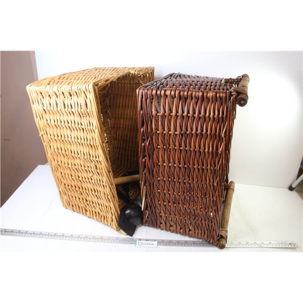 (2) Wicker Baskets w/Wooden Handles (one handle is broken off) Kitchen Utensils