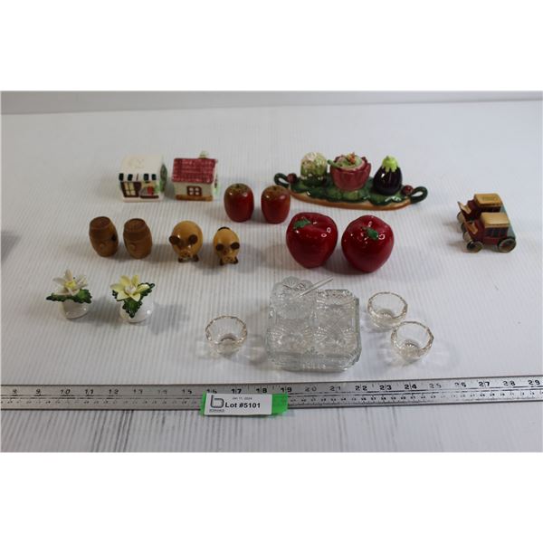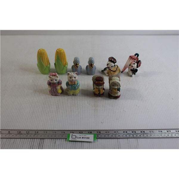 (8) Sets Salt and Pepper Shakers - Some Damage, Tiny Glass Bowls