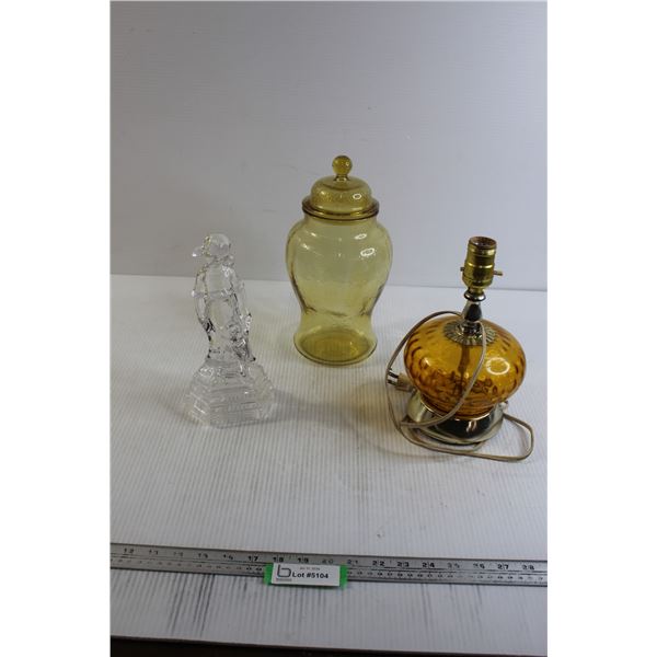 Lamp Base, Glass Girl Figurine, Glass Cookie Jar