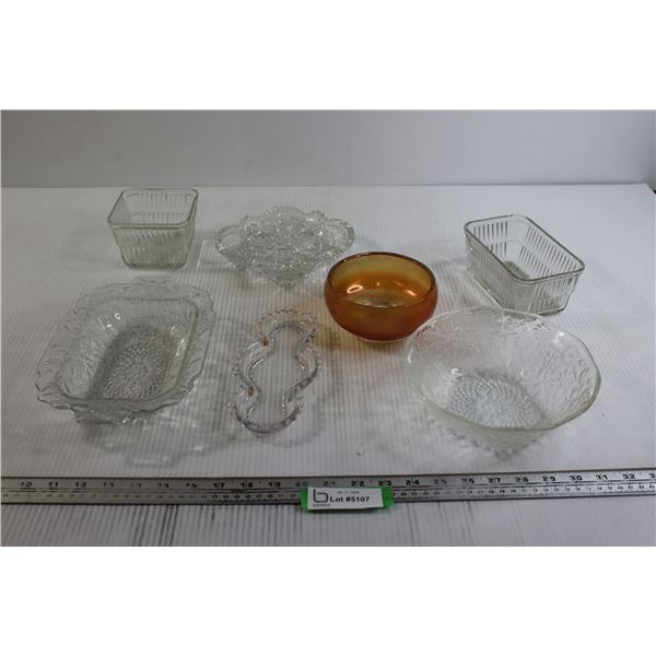 (7) Glass Dishes - Indiana Pineapple Floral Dish