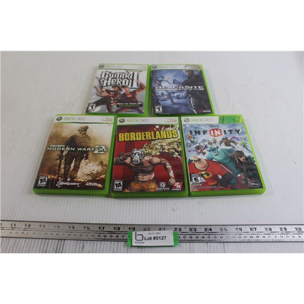 (5) Xbox 360 Games - Guitar Hero II, Disney Infinity, COD Modern Warfare 2