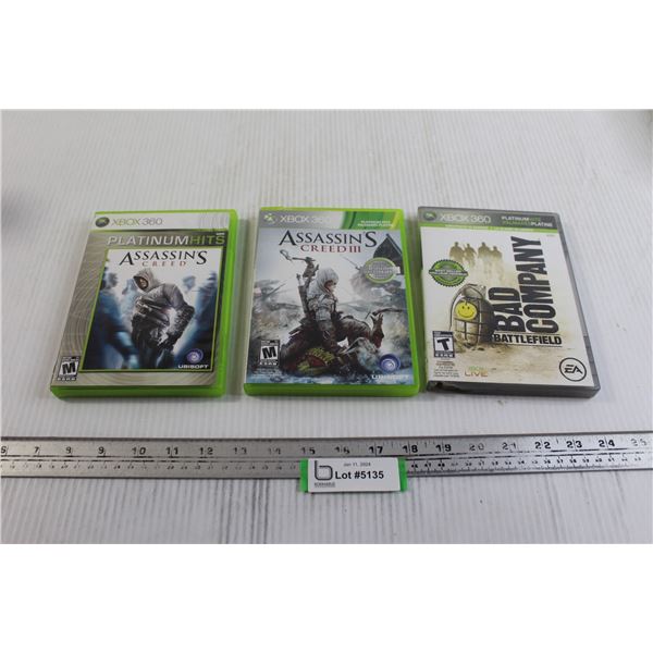 (3) Xbox 360 Games - Assassin's Creed I & III, Bad Company