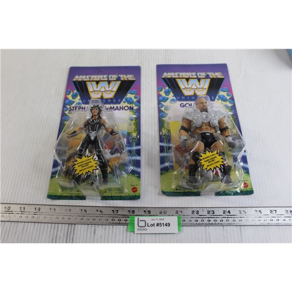 (2) Masters of the Wrestling Universe Figurines - Stephanie McMahon, Goldberg - Sealed