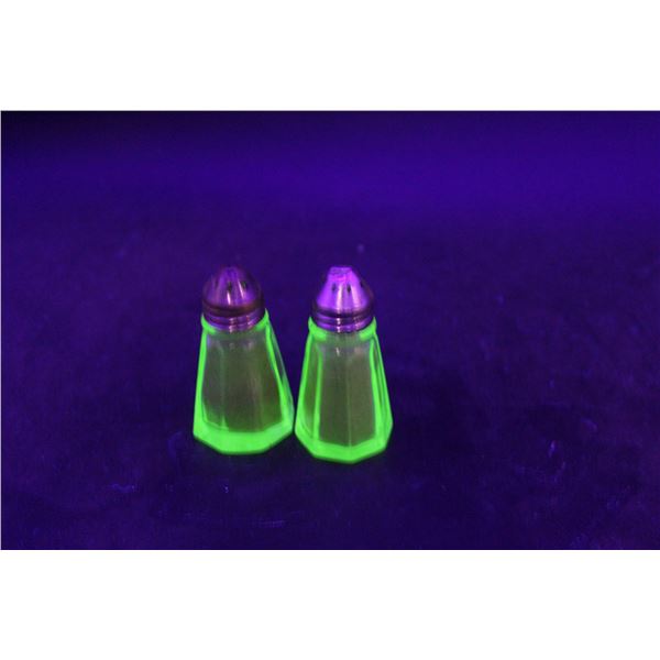 Uranium Glass Salt and Pepper Shakers7459 - Uranium Glass Salt and Pepper Shakers