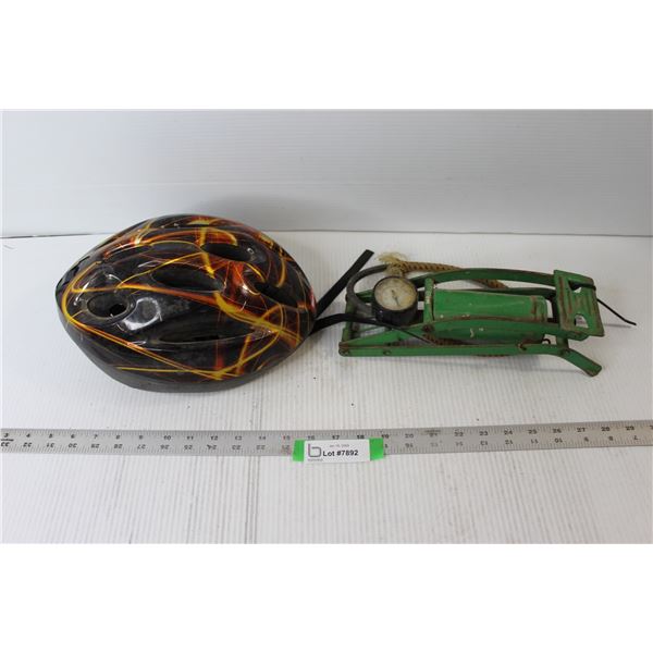 Vintage Foot Air Pump, Bicycle Helmet - Damaged