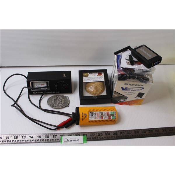 Field Strength/SWR Tester, Vol-Con Tester, Sand Dollar, Belt Buckle, Diamond HD 1080P HDMI In Box