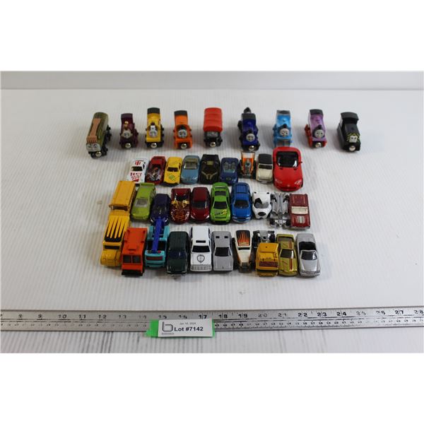 (29) Assorted Toy Cars, (9) Thomas the Train Toys