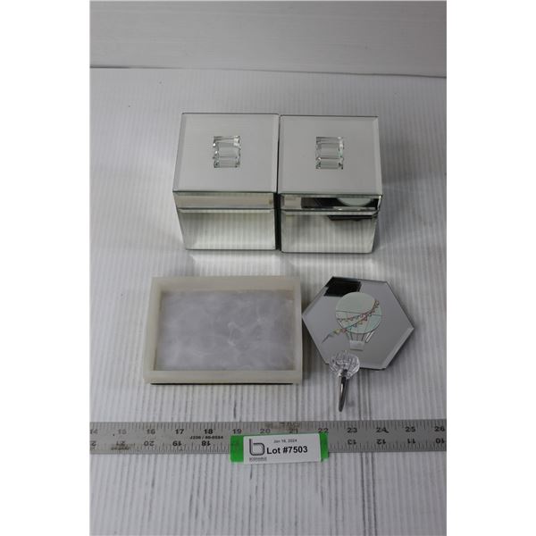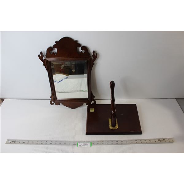 Wood & Wicker Tray 24"x 14", Wall Mounted Wooden Framed Mirror 24"x11.5"