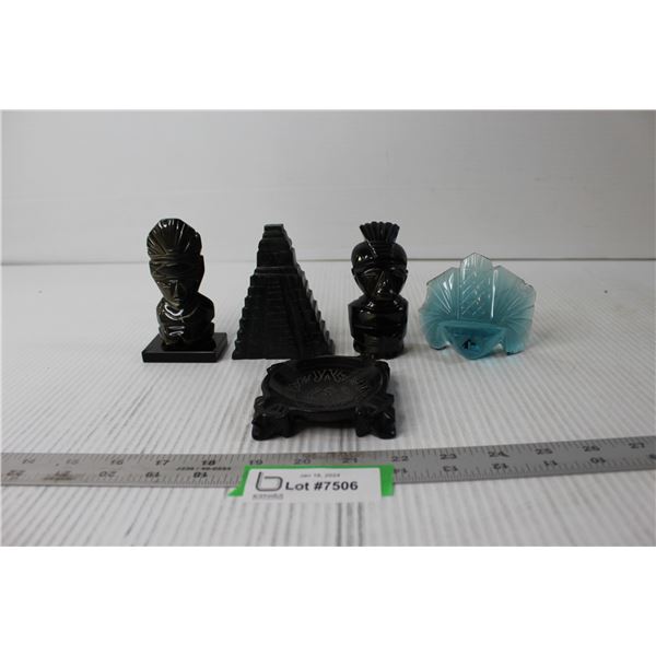 Metal Decor Rocking Chair, Rose Throw Pillow - Has Tear, Alligator Castle Statue Carved Out of Tree