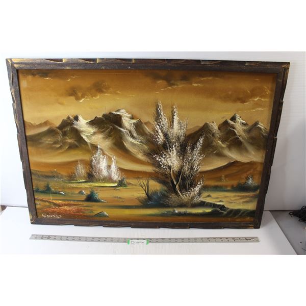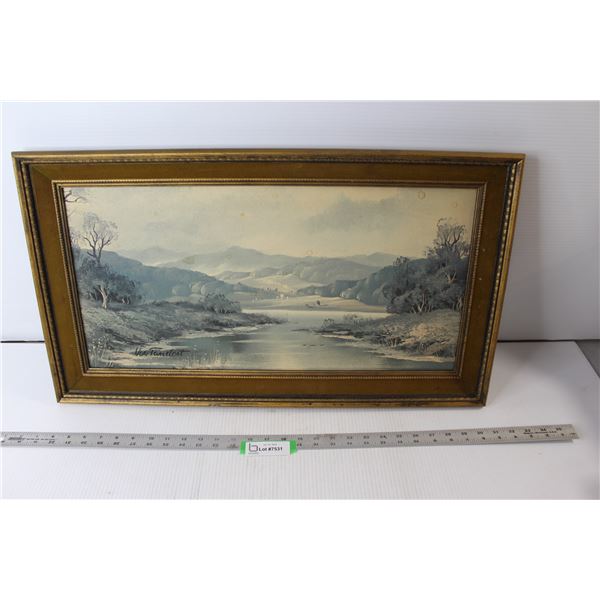 (2) Landscape Paintings by P. Carlo in Wooden Frames - Some Staining - 19"x13"