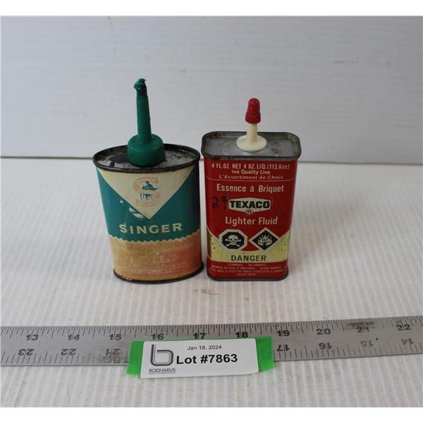 (2) Collector Tins - Singer Sewing Machine Oil, Texaco Lighter Fluid