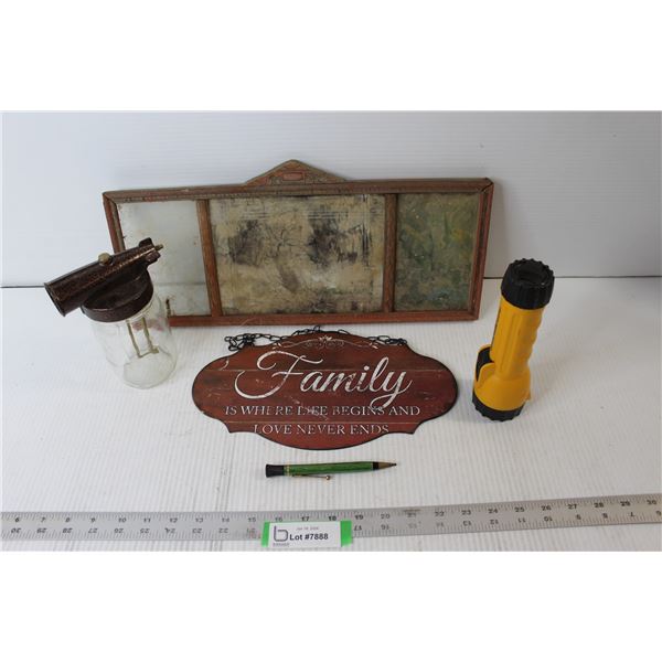 Vintage Picture Frame, Family Sign, Flashlight, Vacuum Attachment, Mechanical Pencil7888 - Vintage Picture Frame, Family Sign, Flashlight, Vacuum Attachment, Mechanical Pencil