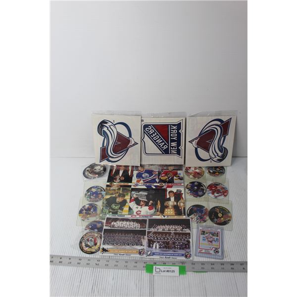NHL Lot - Necklaces, Schedules, Puck-Shaped Containers, Stickers, Banner
