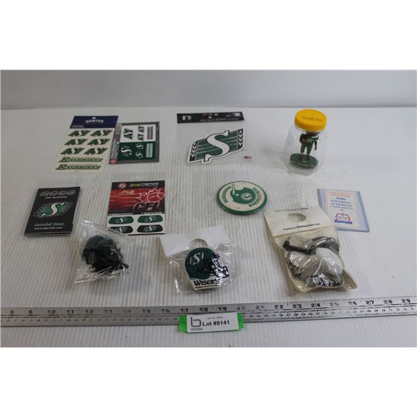 Saskatchewan Roughriders Lot - Bobblehead, Magnet, Stickers, Decal, Schedules, Button