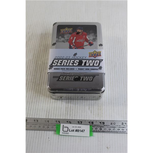 2022-23 Upper Deck Hockey Series Two Collector Tin Box of (9) Packs of Cards - Young Guns Rookie Cards, Sealed