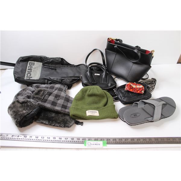 Crooks & Castle Toque, Newdenber Sandals, Bench Crossbody Bag, Ralph Lauren Purse, Misc.