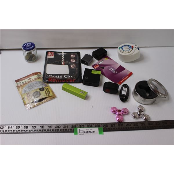 Ying Yang Fidget Spinners, Drain Clog Remover, Various Chargers, Misc.