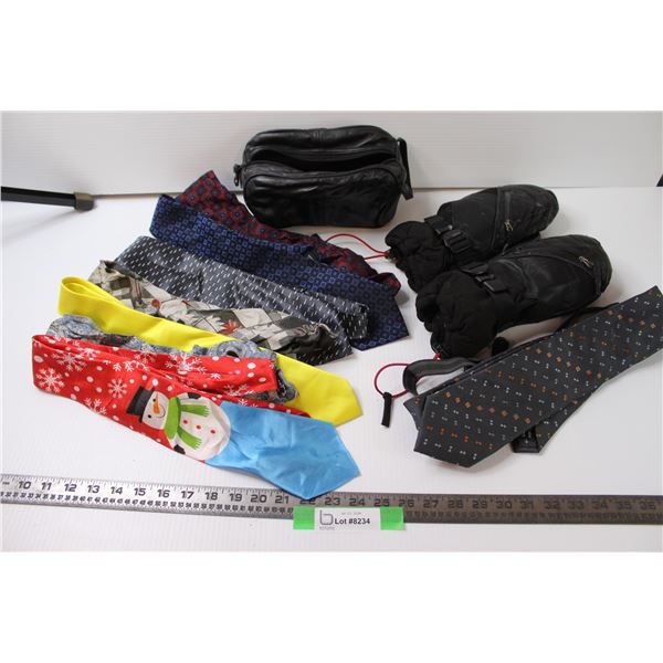 (8) Various Ties, Karbon Mittens, Travel Bag8234 - (8) Various Ties, Karbon Mittens, Travel Bag