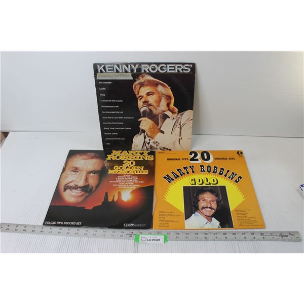 (3) Vintage Vinyl Records - Kenny Rogers, Marty Robbins