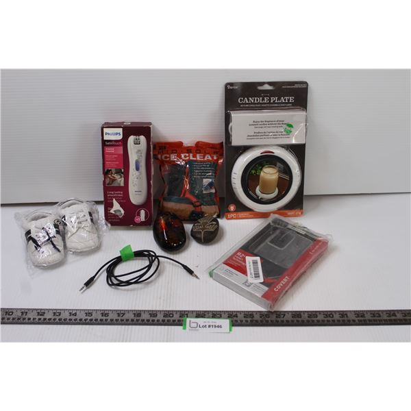 Samsung Note 20 Ultra Case, Philp's Shaver, Baby Shoes, Audio Cord, (2) Art Rocks, Ice Cleats, Candle Plate