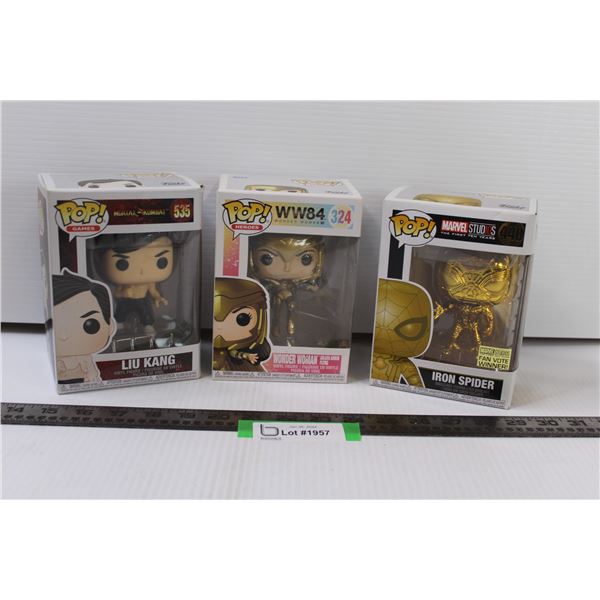 (3) Funko Pop! Characters: #324 Wonder Woman 84, #440 Iron Spider, #535 Liu Kang