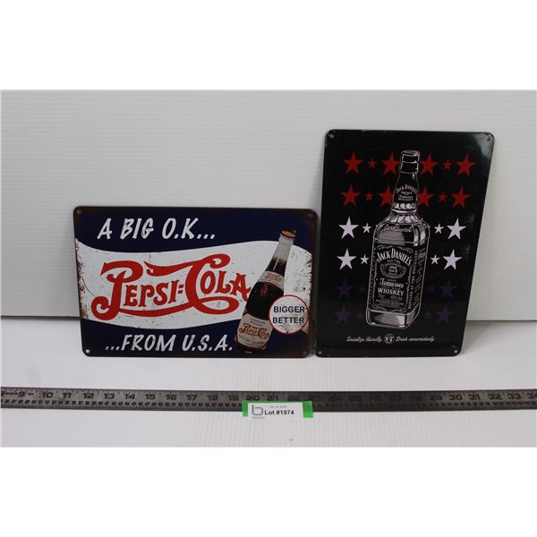 (2) Tin Signs: Pepsi-Cola, Jack Daniels - 12"x8"