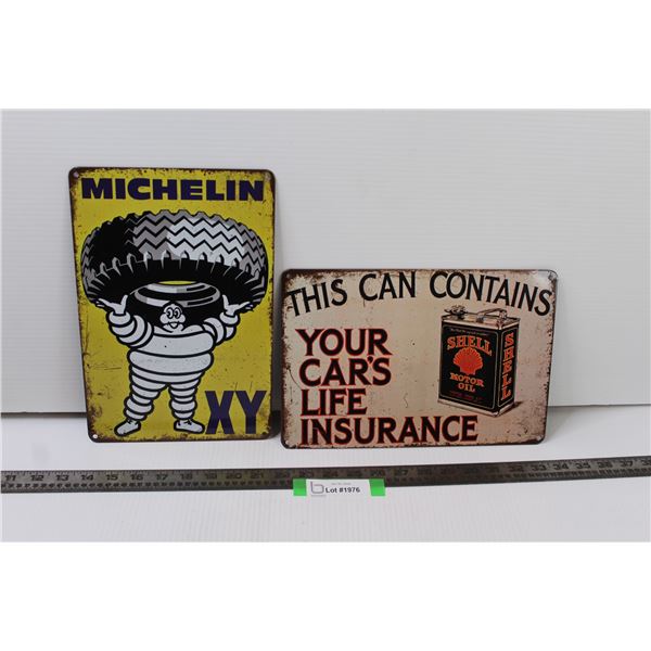 (2) Tin Signs: Shell, Michelin - 12"x8"