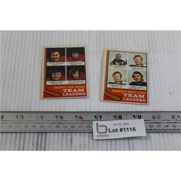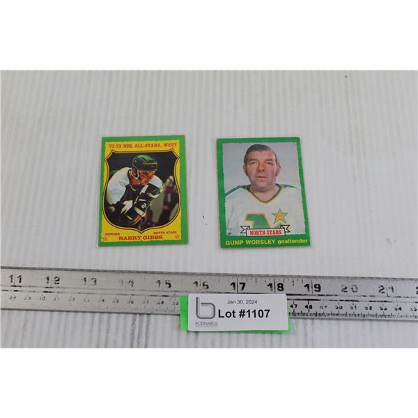 (2) 1972-73 OPC North Stars Hockey Cards - Barry Gibbs, Gump Worsley