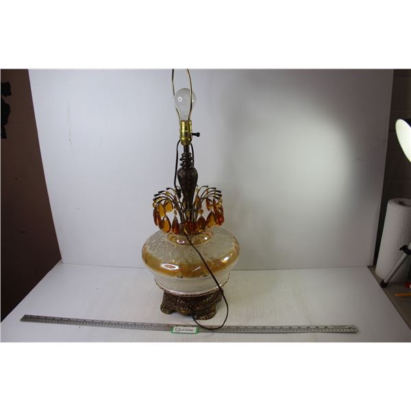 Vintage Lamp - Glass & Metal w/Amber Glass Crystals (working)