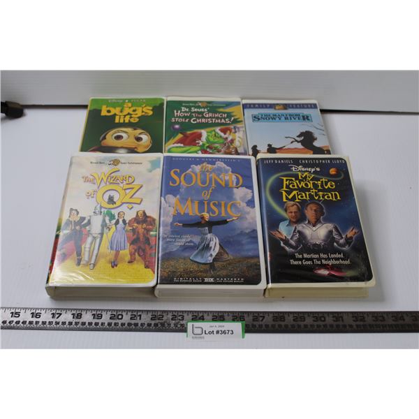 (6) VHS - Wizard of Oz, Bug's Life, Grinch, Sound of Music, Misc.