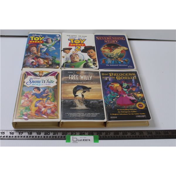 (6) VHS - Toy Story, Snow White, Free Willy, Neverending Story, Princess and the Goblin