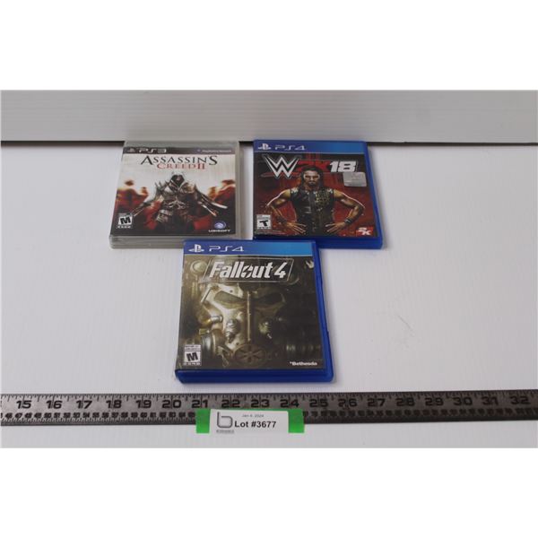 (3) PlayStation Games - Assassins Creed, Fallout 4, W2K Wrestling