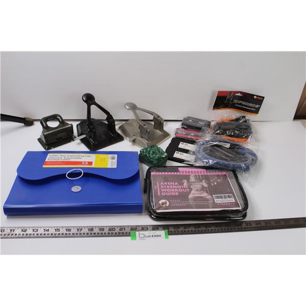 Workout Supplies, Office Supplies: (3) Hole Punches, Expanding File Folder, Printer Ink