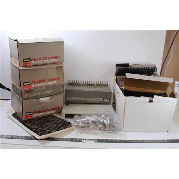 Binding Booklet Machine w/ 9 Boxes of Plastic Coils, Film Solvent Carbon Sheets, Metal Clips