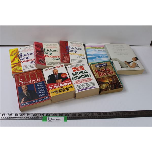 (9) Books: Chicken Soup For The Women's Soul, Dr. Phil, Follow you Dreams, (2) Romance Novels