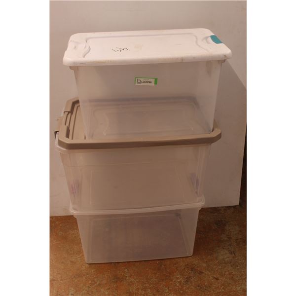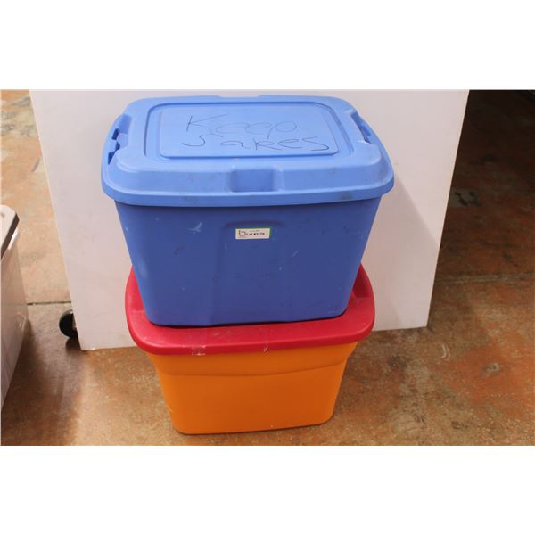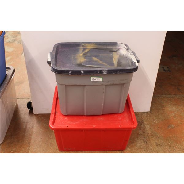 *(2) Totes w/Lids - Various Sizes (crack in one lid)