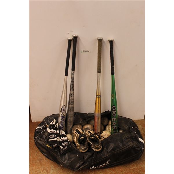 * Louisville Slugger Game Bag w/ (4) Bats, Cleats, Batting Gloves, Assorted Baseballs