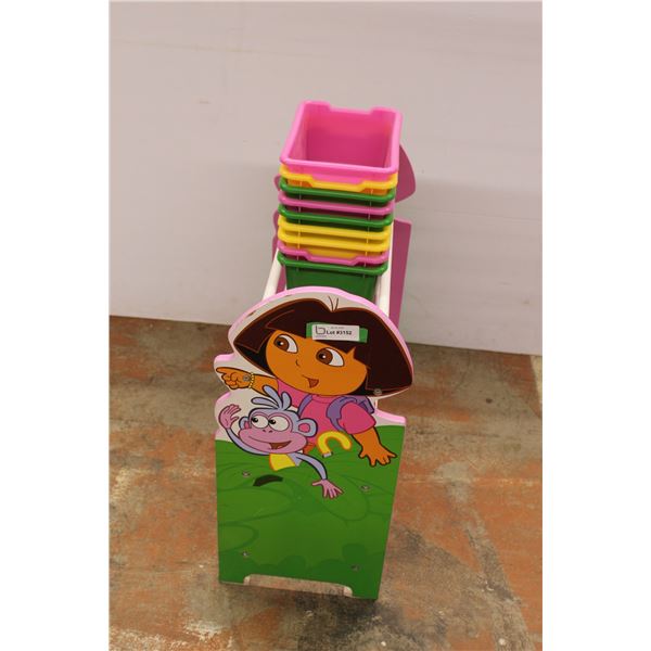 * Dora the Explorer Wooden Shelf Unit with Organizers - 9" x 27" x 26" Tall3152 - * Dora the Explorer Wooden Shelf Unit with Organizers - 9" x 27" x 26" Tall